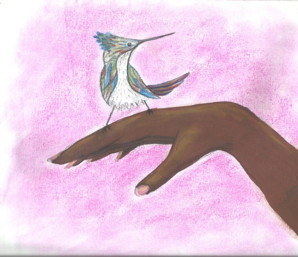 The hummingbird highly symbolizes both the biodiversity of Guadeloupe, as it pollonizes flowers and insures crop of fruits and vegetables, as well as the small but necessary part of each participation to the well-being of our planet. Here, a lovely drawing of one of our student, first destinated to the end of our short story of Alizée, became the symbol of our action throughout the Erasmus project, and still now, in every actions of our « éco-délégués ». Here is the original drawing designed by Keylian Pilloux.
